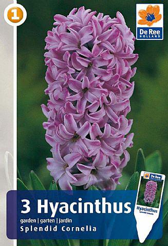 3 stk./pose. Hyacinthus Splendid Cornelia. Duftende. Farve: Meget lys lilla. Højde: 25 cm. Blomstring: Marts-april. Plantetid: Fra september til frosten går i jorden. Placering: Halvskygge. Planteafstand: 15 cm. Plantedybde: 15 cm.